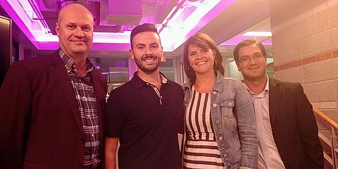 Sur la photo : M. Stéphane Gagnon de Futurpreneur, M. Gabriel Dickner de 3D immo, Mme Maripier Tremblay, présidente du CA d'Entrepeneuriat Laval et M. Mathieu Fortier de BDC.