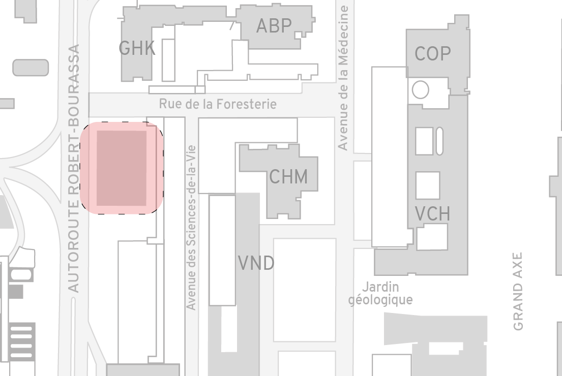 Le complexe sera situé à l’ouest du campus, délimité par l’autoroute Robert-Bourassa Nord, la rue de la Foresterie et l’avenue des Sciences-de-la-Vie.